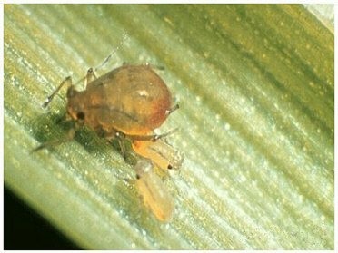 Pulgón verde de los cereales(Schizaphis graminum):Tene un tamaño parecido a R. padi. Es de color verde claro con una banda oscura longitudinal sobre el dorso.