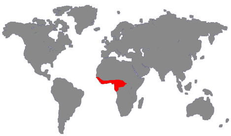 Se encuentra principalmente en el bosque húmedo entre los 800 y 1.500 metros sobre el nivel del mar.