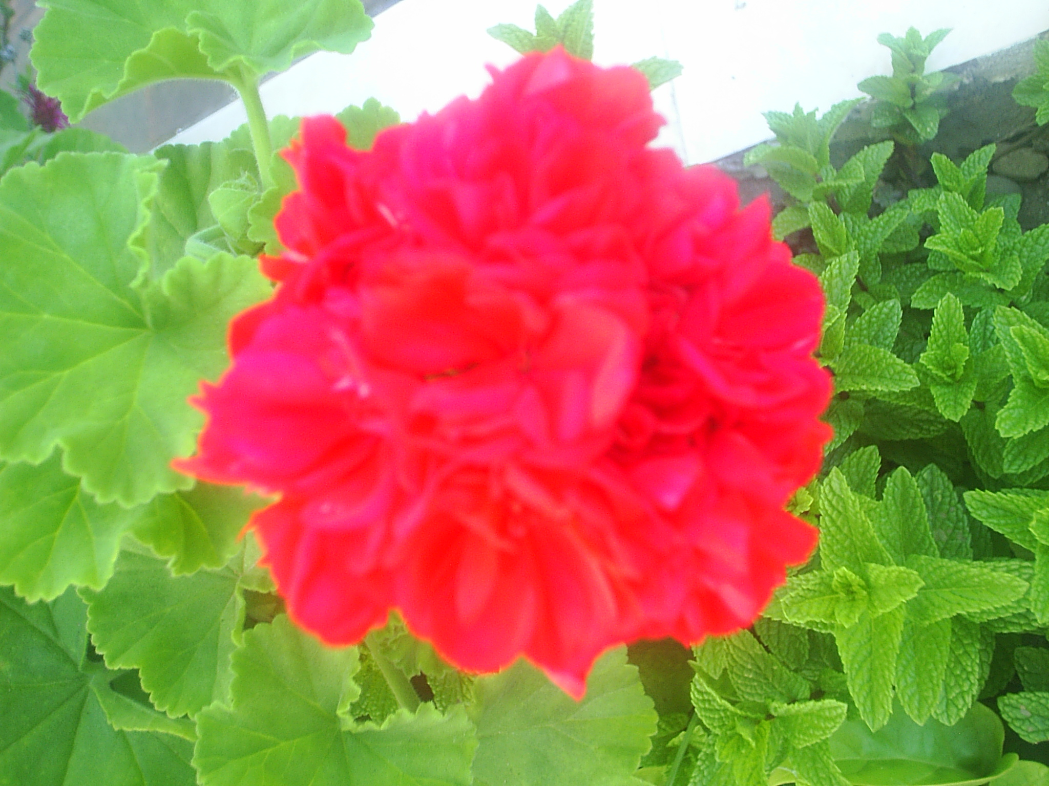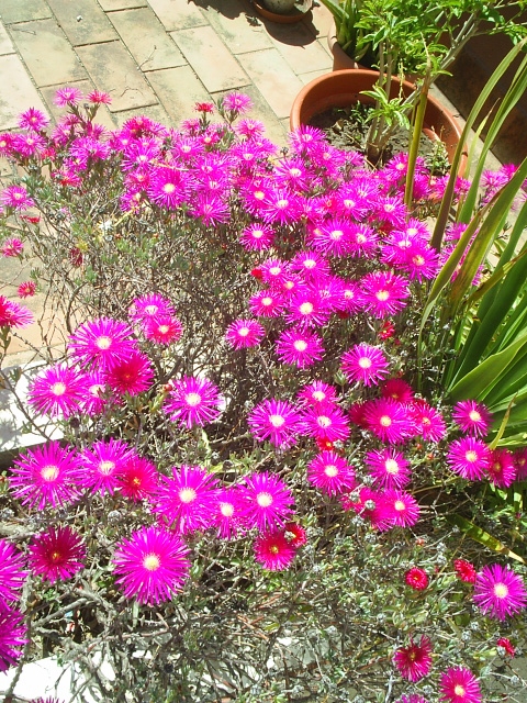 Un pequeño jardin entre el arriate y unas pocas macetas. Las que ha sobrevivido a la última sequia.