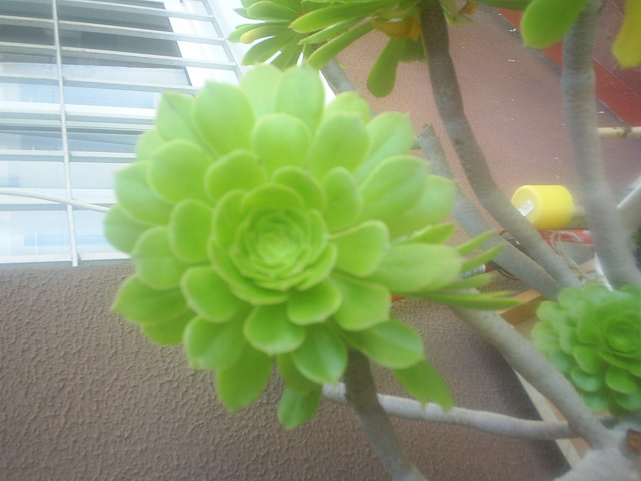 Aeonium arboreum 1 Plantas 2201 4 Captus en forma de rosa. Hojas carnosas y verdes. Florece por enero. Flor amarilla en forma de cono, formada por muchas florecillas pequeñas.