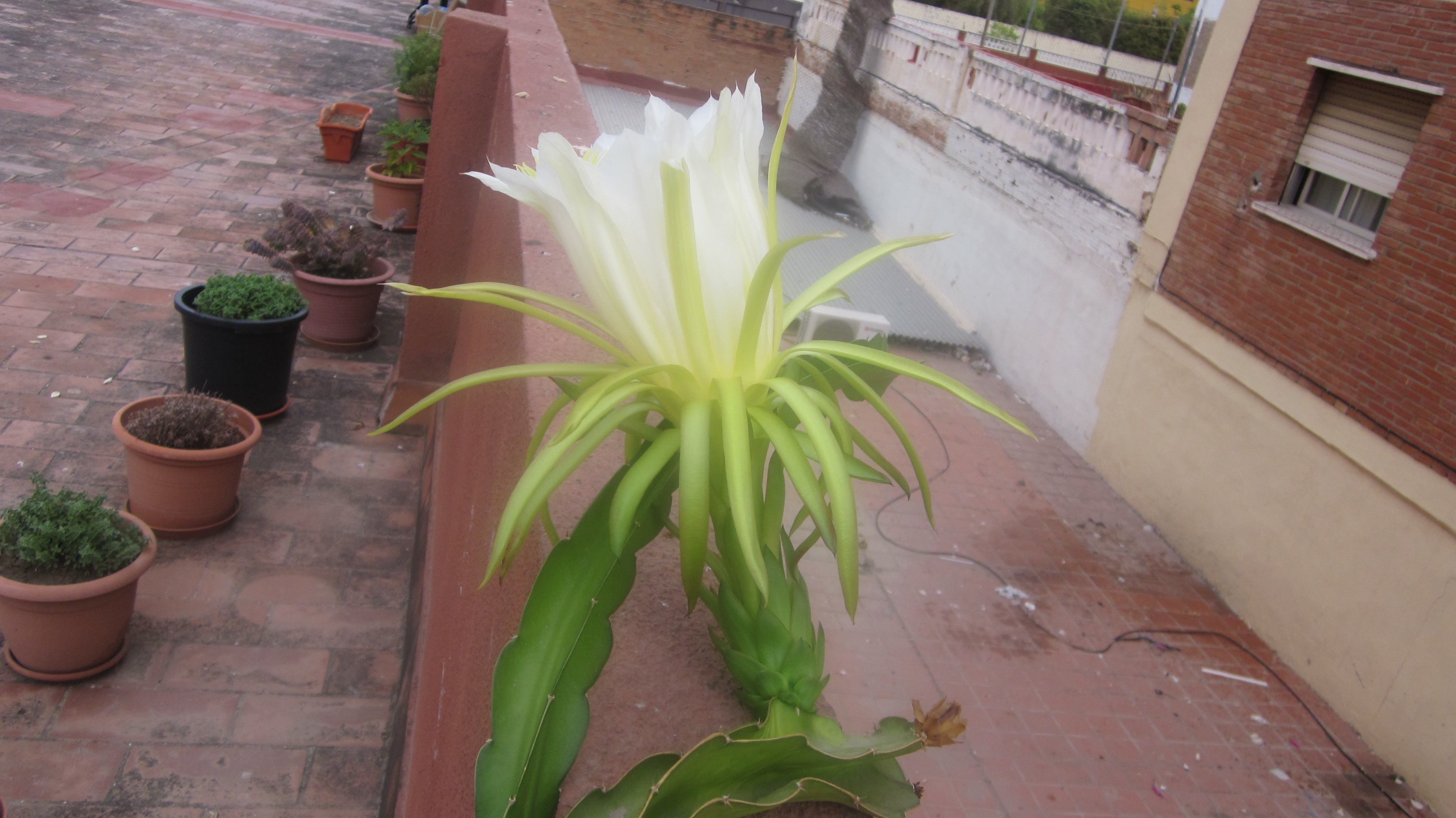 Hylocerus undatus. 1 Plantas 2737 3 Un cactus que compró mi hija muy pequeñito, este año nos ha sorprendido con esta linda flor.