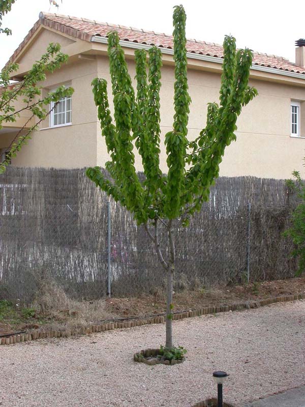 | Ver | 3 | Pruno Prunus Dos ejemplares de 3 años plantados a 2 metros de distancia. No sé por qué pero uno se ha puesto el doble de grueso que el otro. El aporte de agua es el mismo. A saber. | |