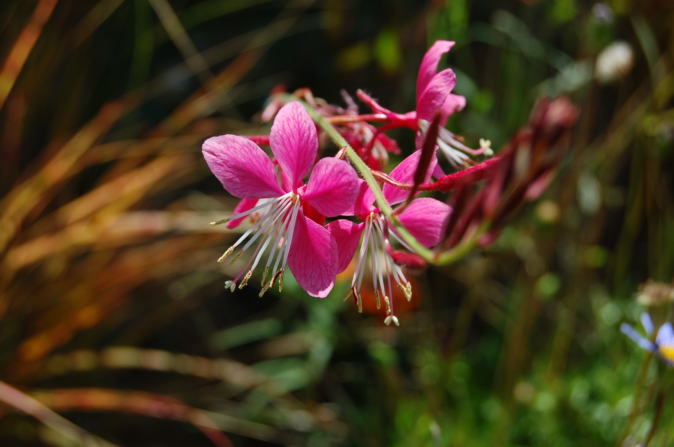 | Ver | 2 | Gaura Gaura lindheimieri Una blanca - Una rosa. Muy graciosa, de las hojas parten unos largos tallos hasta 80cms con la flor en la punta. De lejos parecen flores suspendidas en el aire. Sensacion de sutileza. |